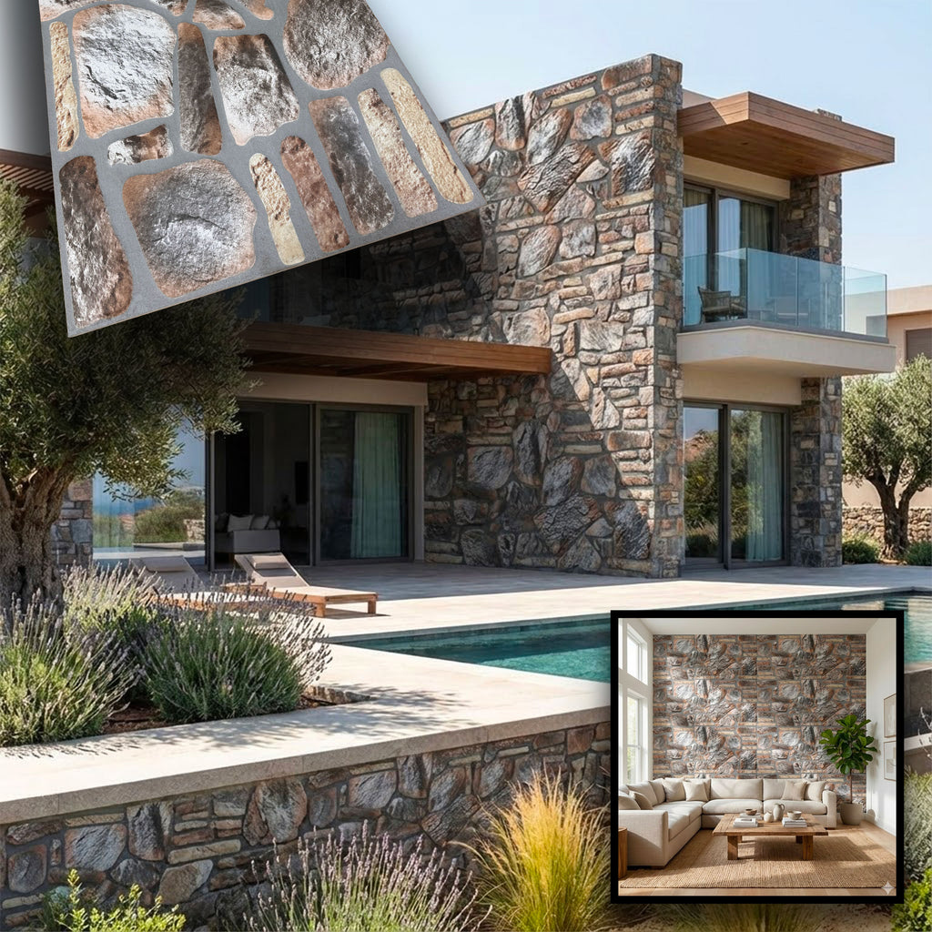 I pannelli in Styrofoam fino a ben 2 centimetri di spessore sono indicati per interno ed esterno, sono molto realistici ed isolano dal freddo, dall'umidità, dal caldo, dai rumori oltre ad arredare e decorare con effetto ultrarealistico, sono intonacati e sabbiati, resistono al sole ed alle intemperie.