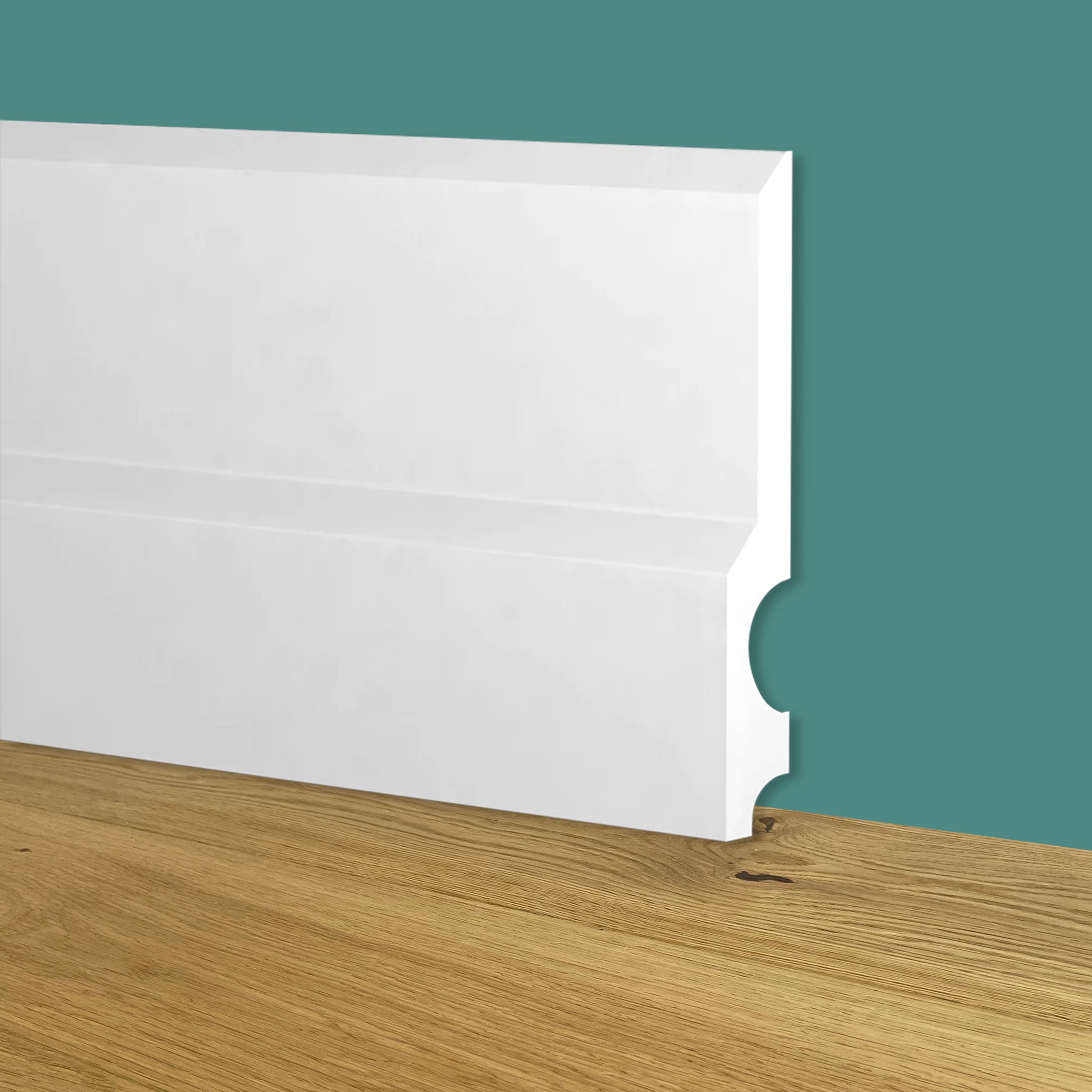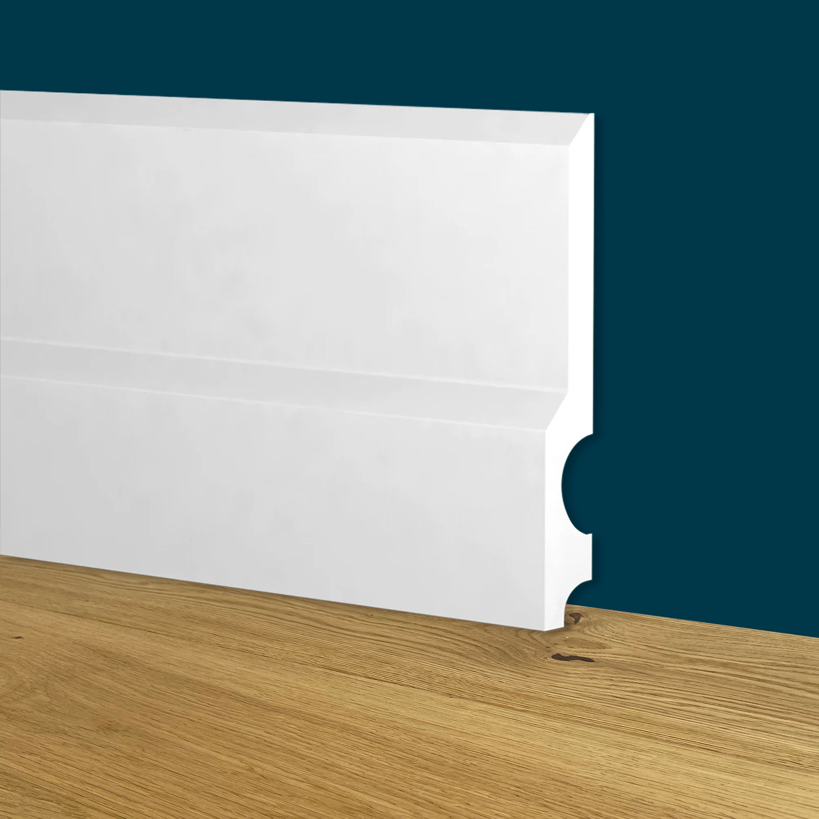 палет от 96 линейни метра много модерни БЕЛИ первази мод. GIZA 130x18x2000mm в ПОЛИМЕРИ - Полиструктурен