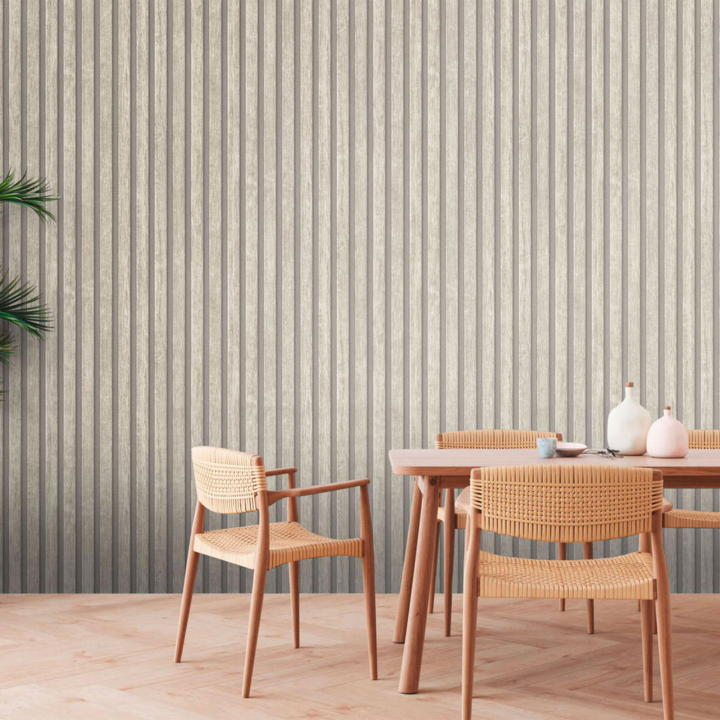 5 кв.м ролка тапети РАИРАНИ ДЪРВЕНИ ЛАМЕЛИ 3D ефект Boiserie в целулоза и текстилни влакна цвят PROVENCAL