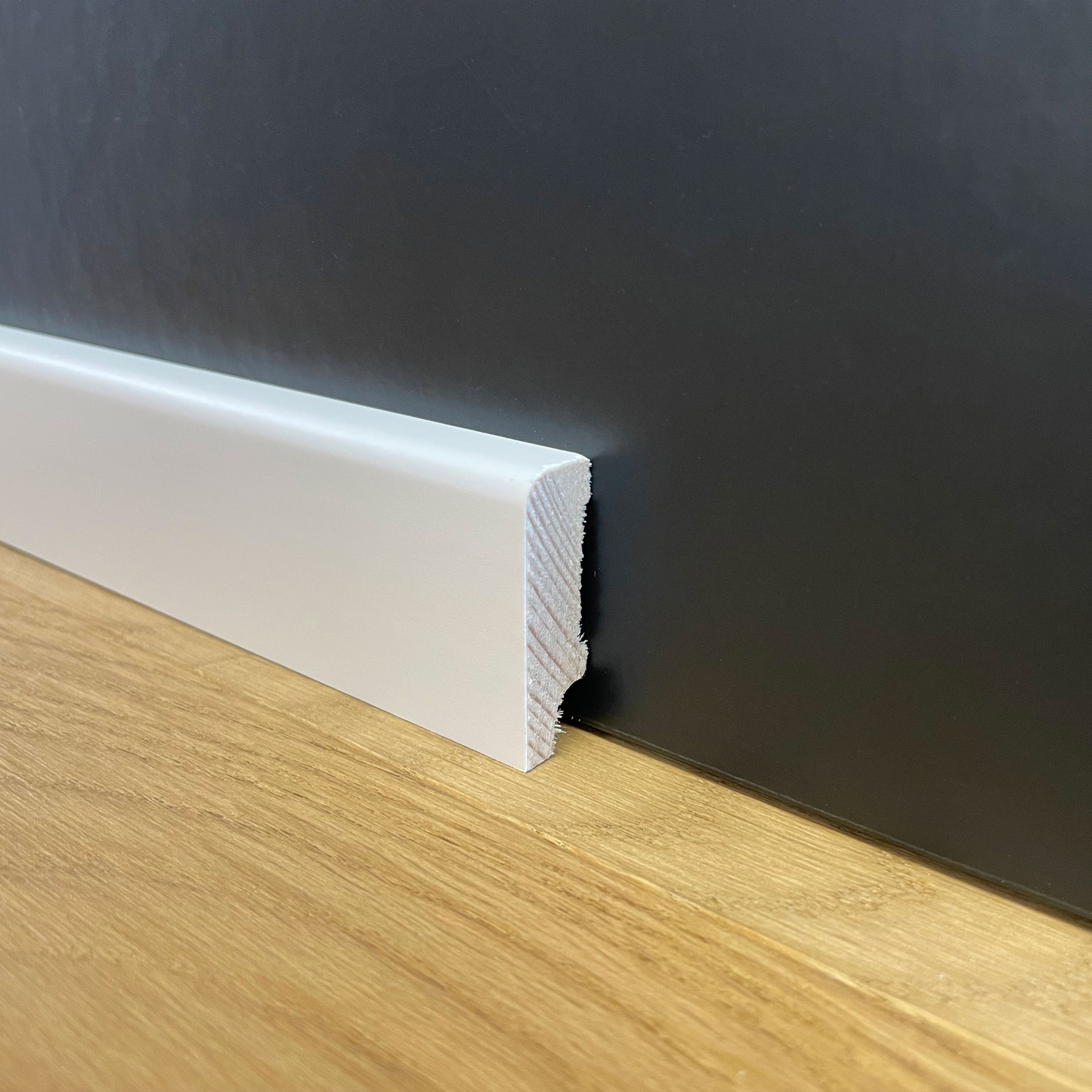 Battiscopa PREMIUM in legno MASSELLO squadrato 70x10 laccato bianco liscio (prezzo al metro)