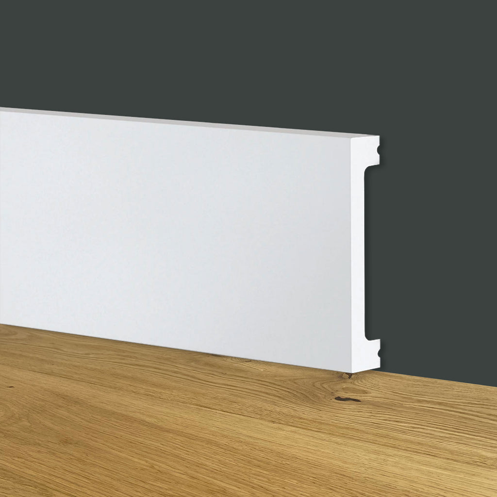 Sockelleiste QUADRATISCH WEISS Kabeltülle 100x13x2000mm aus POLYMEREN - Polystruktur