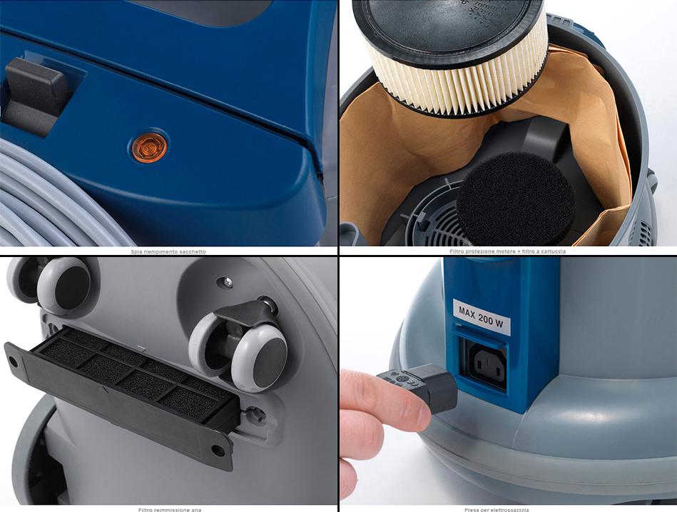 Effizienz und Energieeinsparung sind heute grundlegende Marktanforderungen, die durch immer verbindlichere Vorschriften geregelt werden. Wirbel reagiert auf dieses Bedürfnis präzise und präzise pünktlich und revolutioniert sein Flaggschiffmodell im Namen maximaler Energieeffizienz und unübertroffener Leistung. POWER D 12 HE (High Efficiency) stellt den richtigen Kompromiss dar. Unverändert in Form und Ausstattung, aber radikal erneuert durch den 650 W Saugmotor , es ist die perfekte Mischung aus Zuverlässigkeit, Leistung und optimalem Verbrauch.