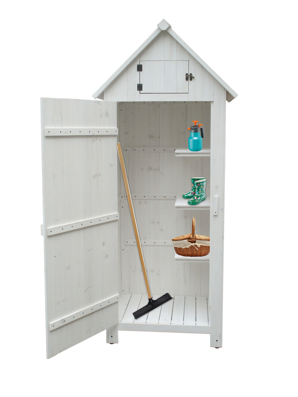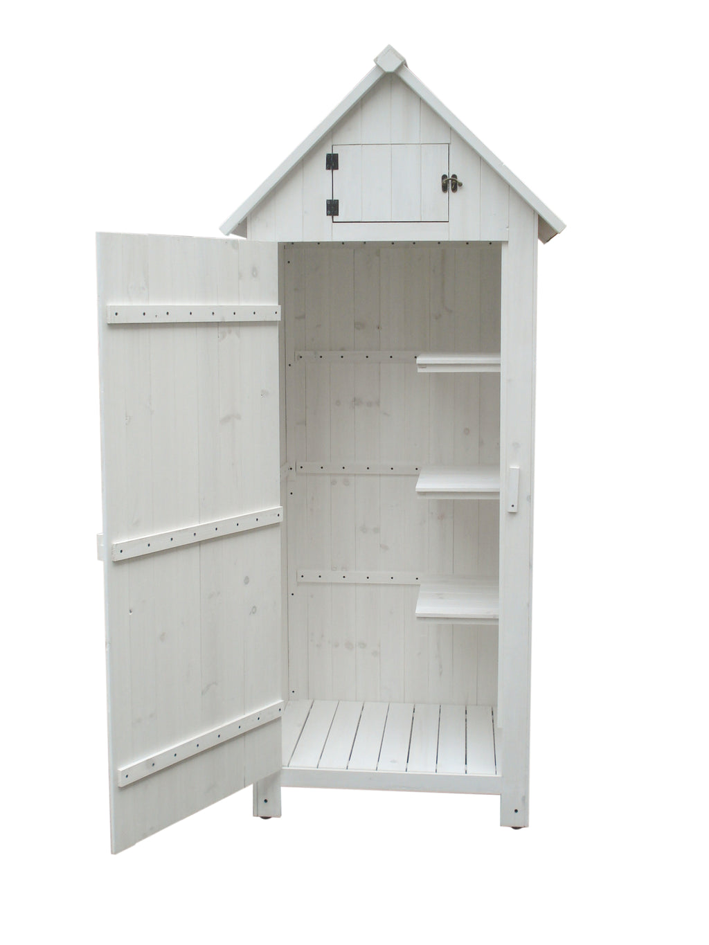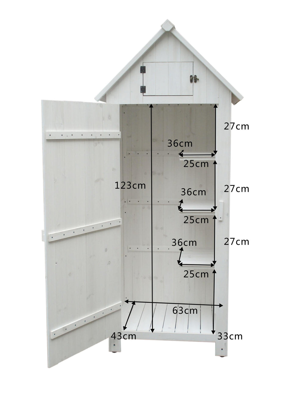 Ντουλάπα κήπου σε ξύλο ελάτης, εμποτισμένη, λευκό χρώμα, 3 ράφια