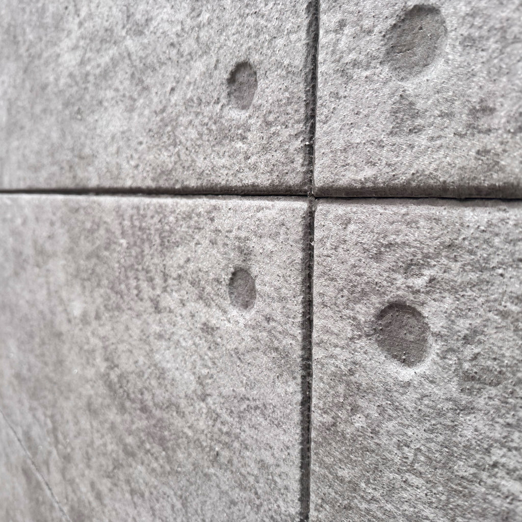 Rivestimento tecnico in malta e resine: superficie solida, realistica e piacevole al tatto.