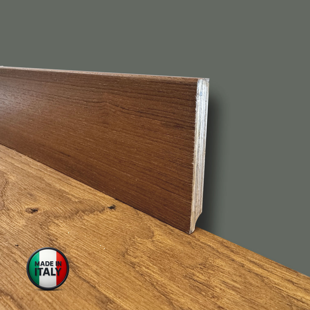 €1,89ml ** FUORI TUTTO ** Lotti da 91ml di Battiscopa in legno multistrato impiall. TEAK 75x10mm squadrato