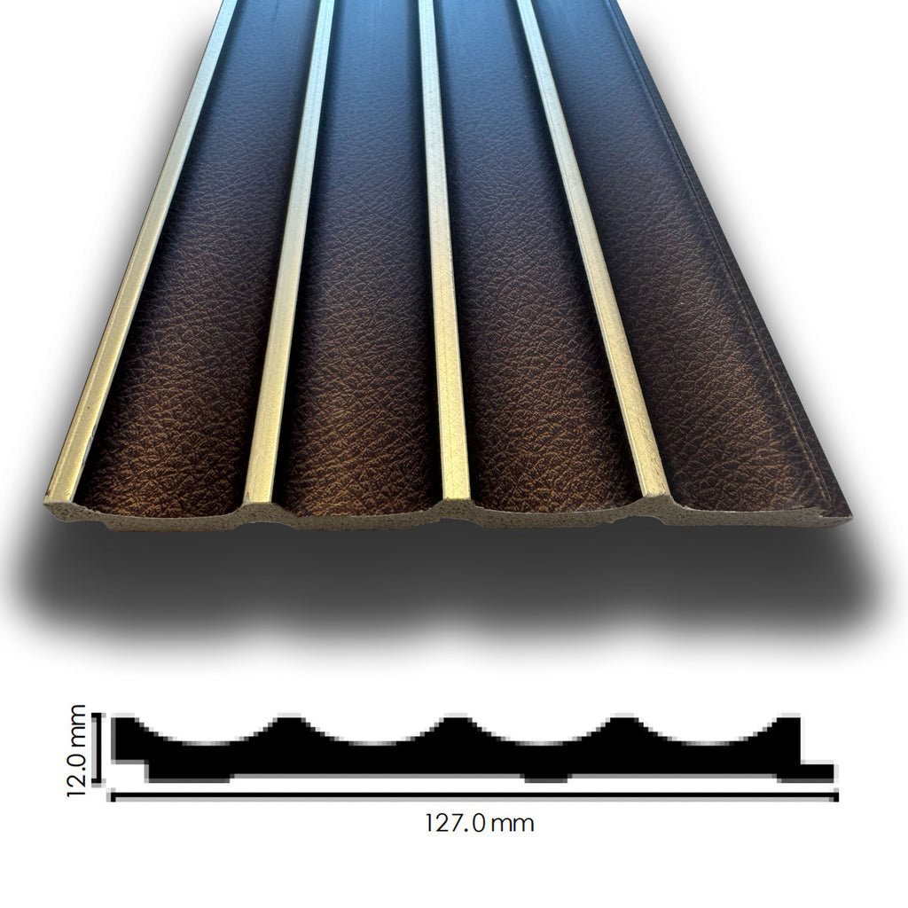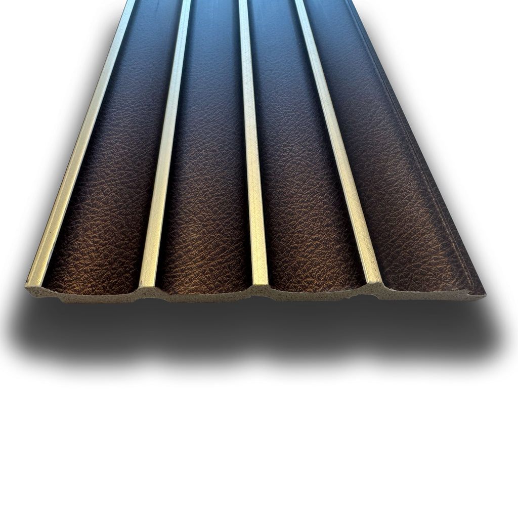 Asta intera 12x127x2800mm di Rivestimento Parete Boiserie cannettato Lamelli in polimeri LEATHER and GOLD (oro e effetto pelle) (costo dell'asta 8,99€ iva inclusa) - trasporto fisso di 22€ su qualsiasi quantitativo e in ogni zona d'Italia, tempi di consegna 10gg circa su pallet).
