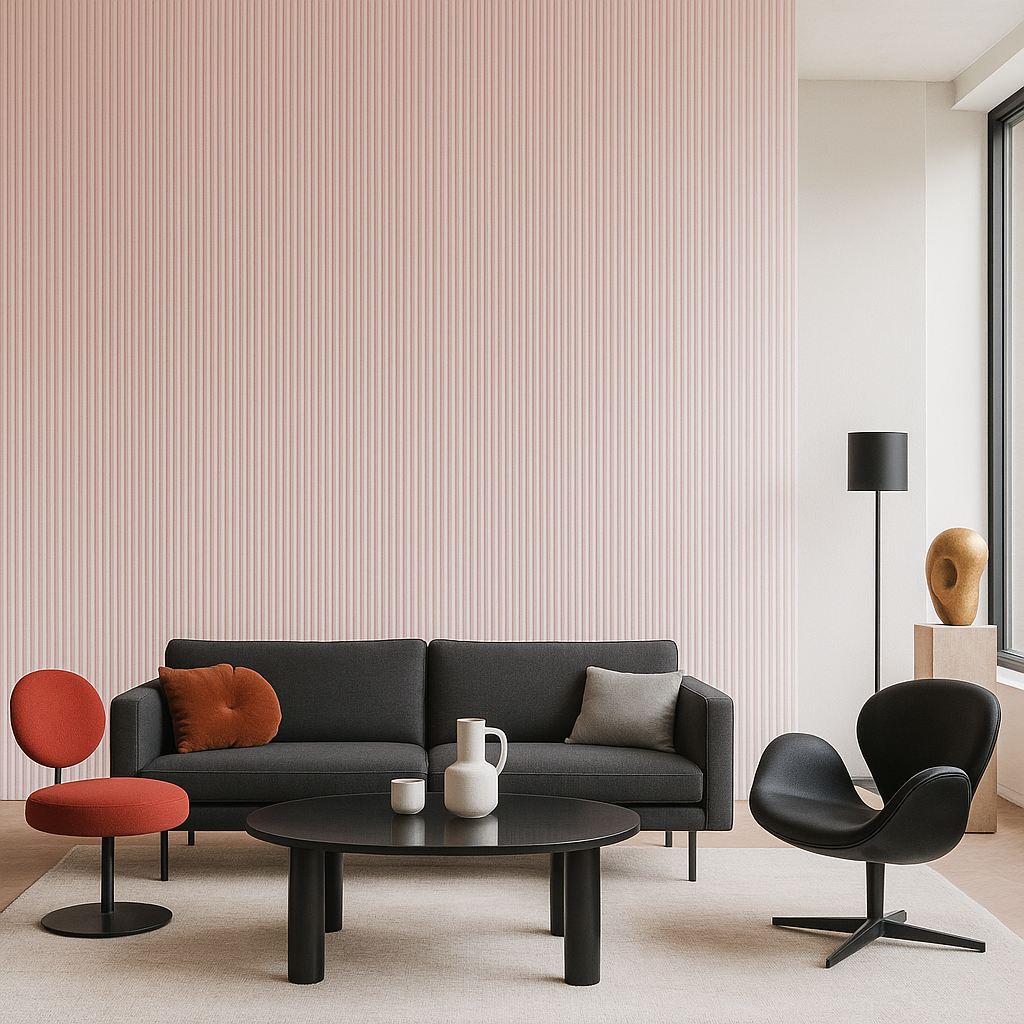 Asta intera 12x154x2800mm di Rivestimento Parete Boiserie cannettato Lamelli tondi eff. Touch DUSTY ROSE (costo dell'asta 8,99€ iva inclusa) - trasporto fisso di 22€ su qualsiasi quantitativo e in ogni zona d'Italia, tempi di consegna 10gg circa su pallet).