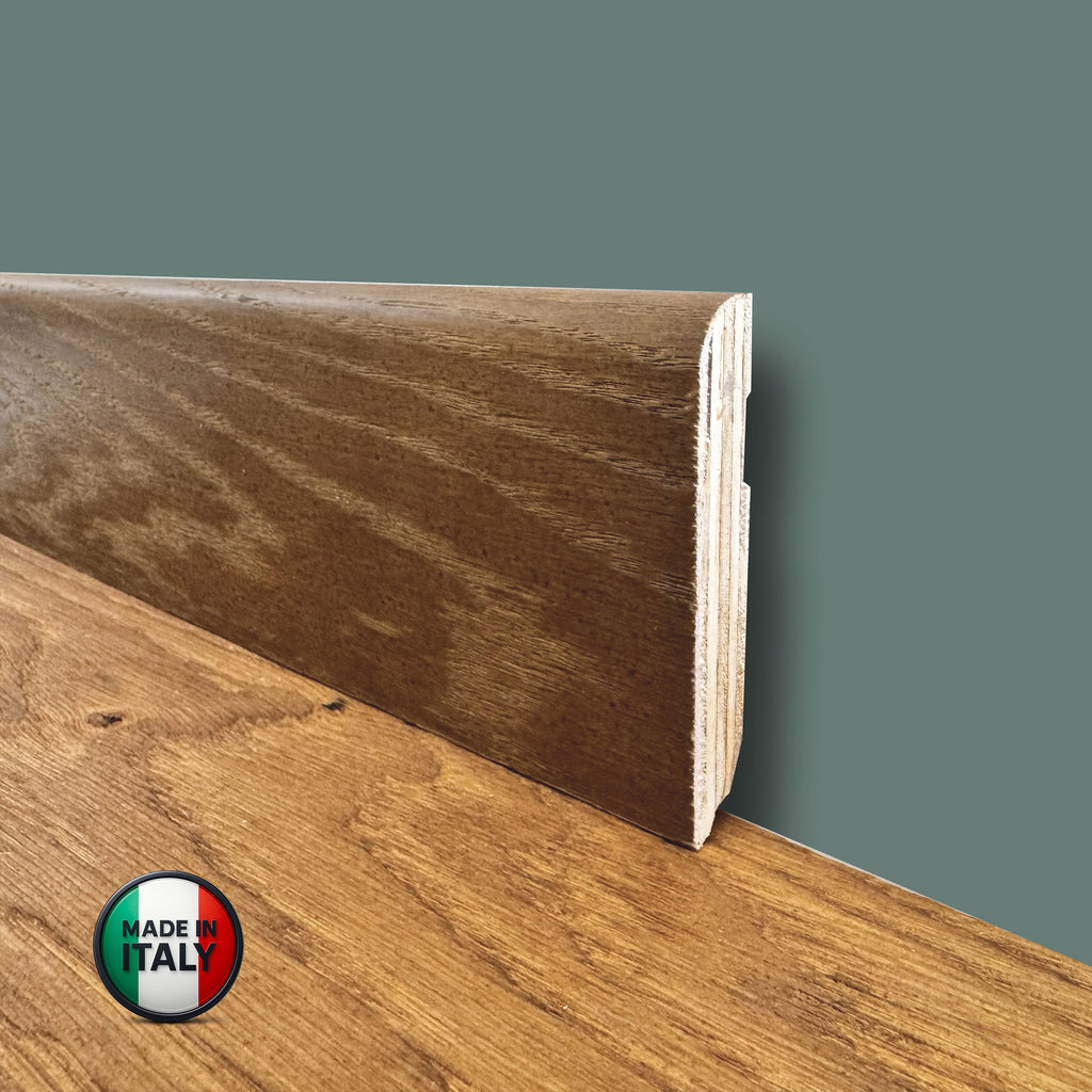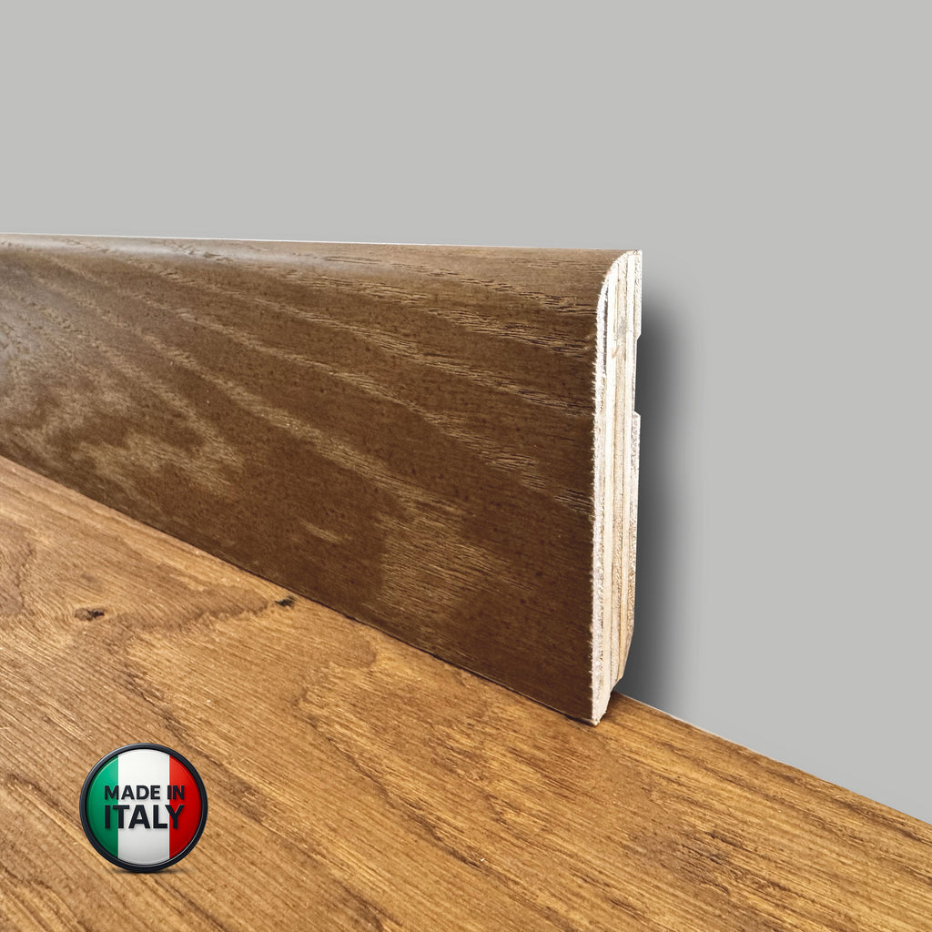 €1,49ml ** FUORI TUTTO ** Lotti da 85ml di Battiscopa in legno multistrato impiall. ROVERE NOCCIOLA 82x13mm