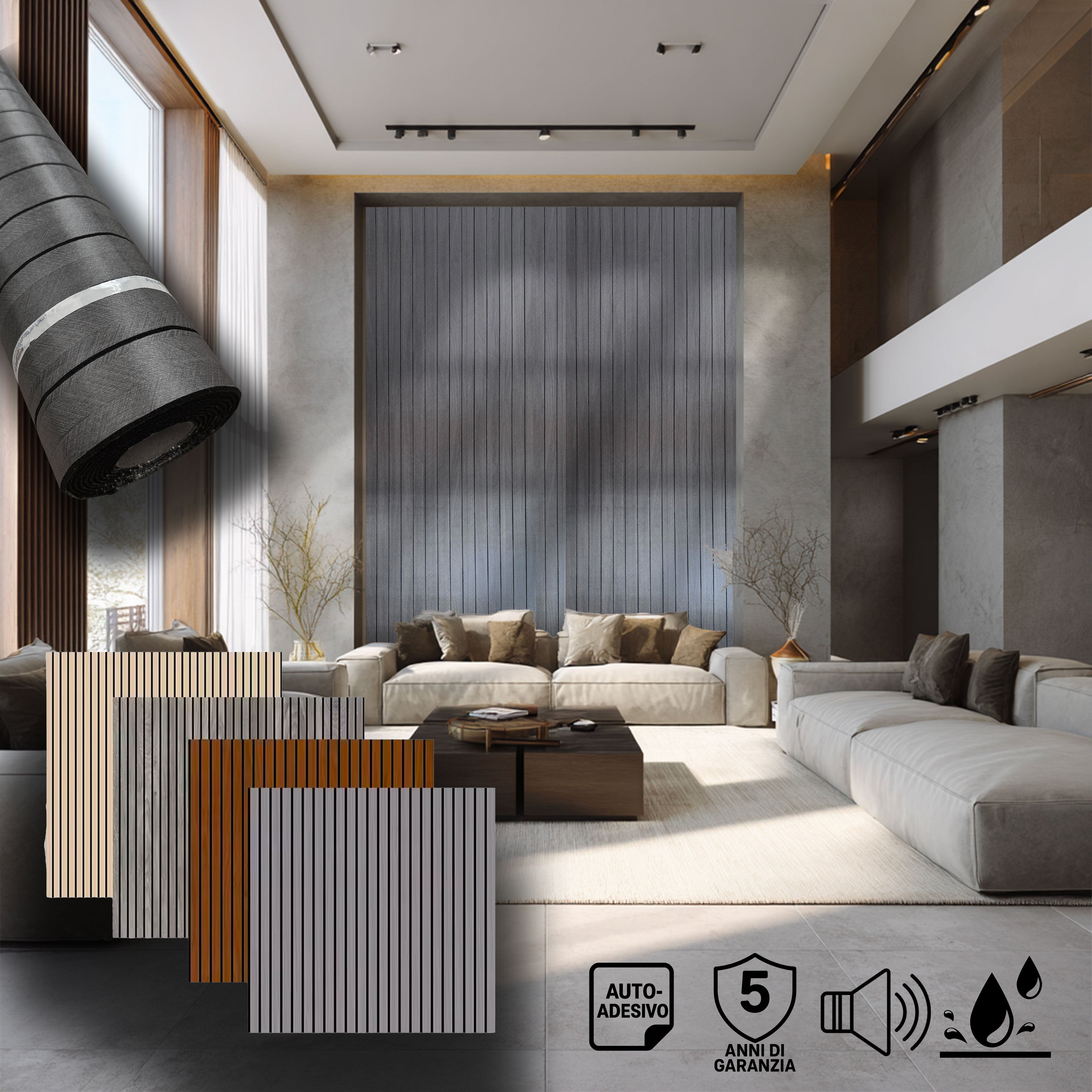 Asta intera 12x154x2800mm di Rivestimento Polimeri Boiserie cannettato Lamelli tondi eff. Touch VELVET GREY