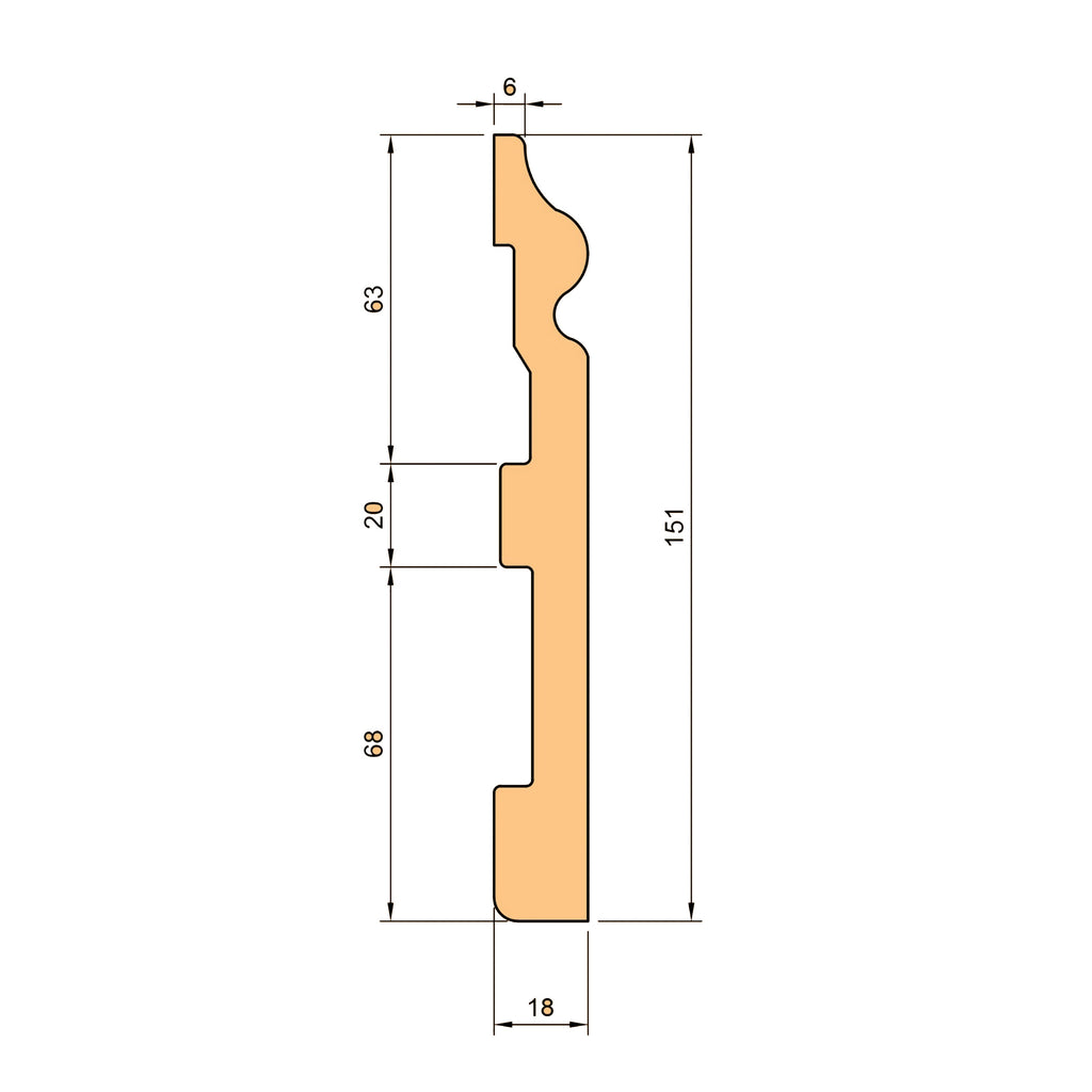 paleta od 100 dužnih metara BIJELA Lajsna Lajsna mod. ETNO 150x18x2000mm u POLIMERIMA - Polistrukturirano