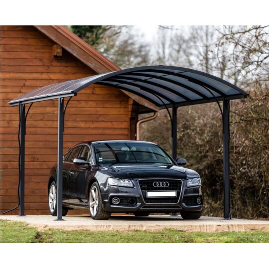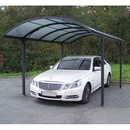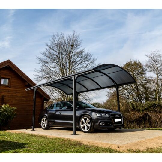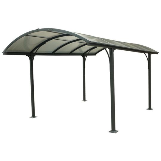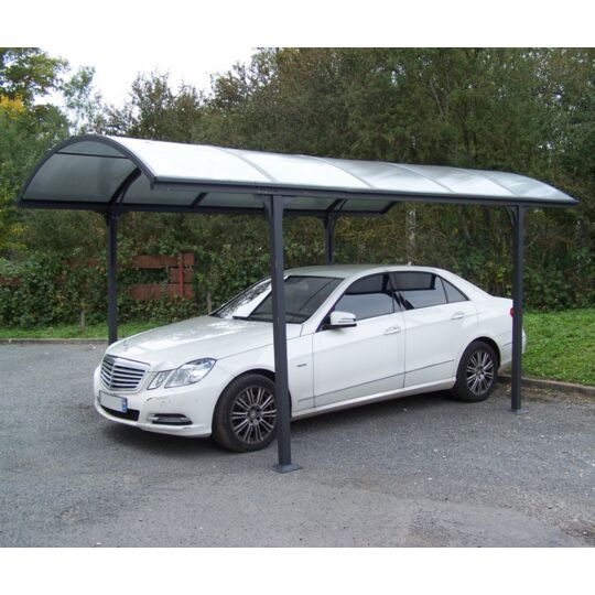 Noapaļota nojume stāvvietai alumīnija jumtā šūnveida polikarbonātā 300x480cm