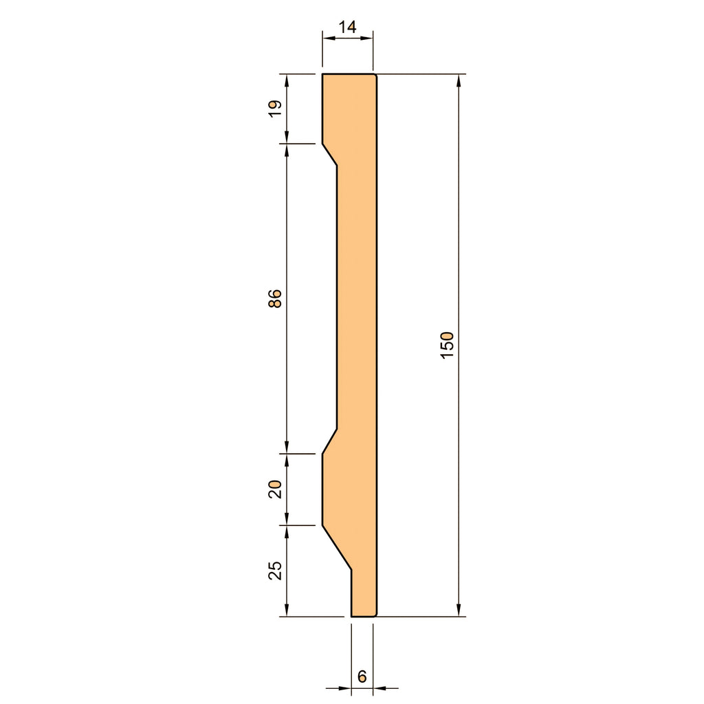 15 cm wysokości - 1,5 cm grubości - długość całego pręta 2 metry