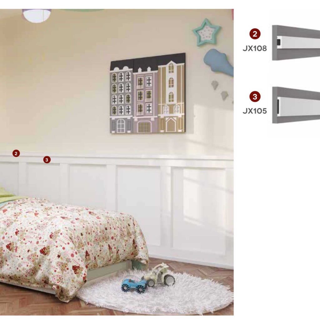 Decorare le pareti della propria casa aggiungendo un tocco unico e personalizzato, comporre delle boiserie in modo semplice e pratico: è questa l’idea originaria, la possibilità di costruire dei pannelli che siano duttili, adattabili ad ogni tipo di parete, di qualunque dimensione o forma, che permettano ai progettisti di creare senza limiti, come se ogni idea sia realizzabile. Tutto ciò, comodo nel montaggio, facile nella pitturazione e inoltre ad un costo accessibile. Ma il proposito di non avere limiti si estende anche agli utilizzi del prodotto, che non vuole essere funzionale solo alla creazione di boiserie da parete, ma una serie di profili combinabili tra loro e adattabili anche ad altri usi (battiscopa, cornici, fasce).