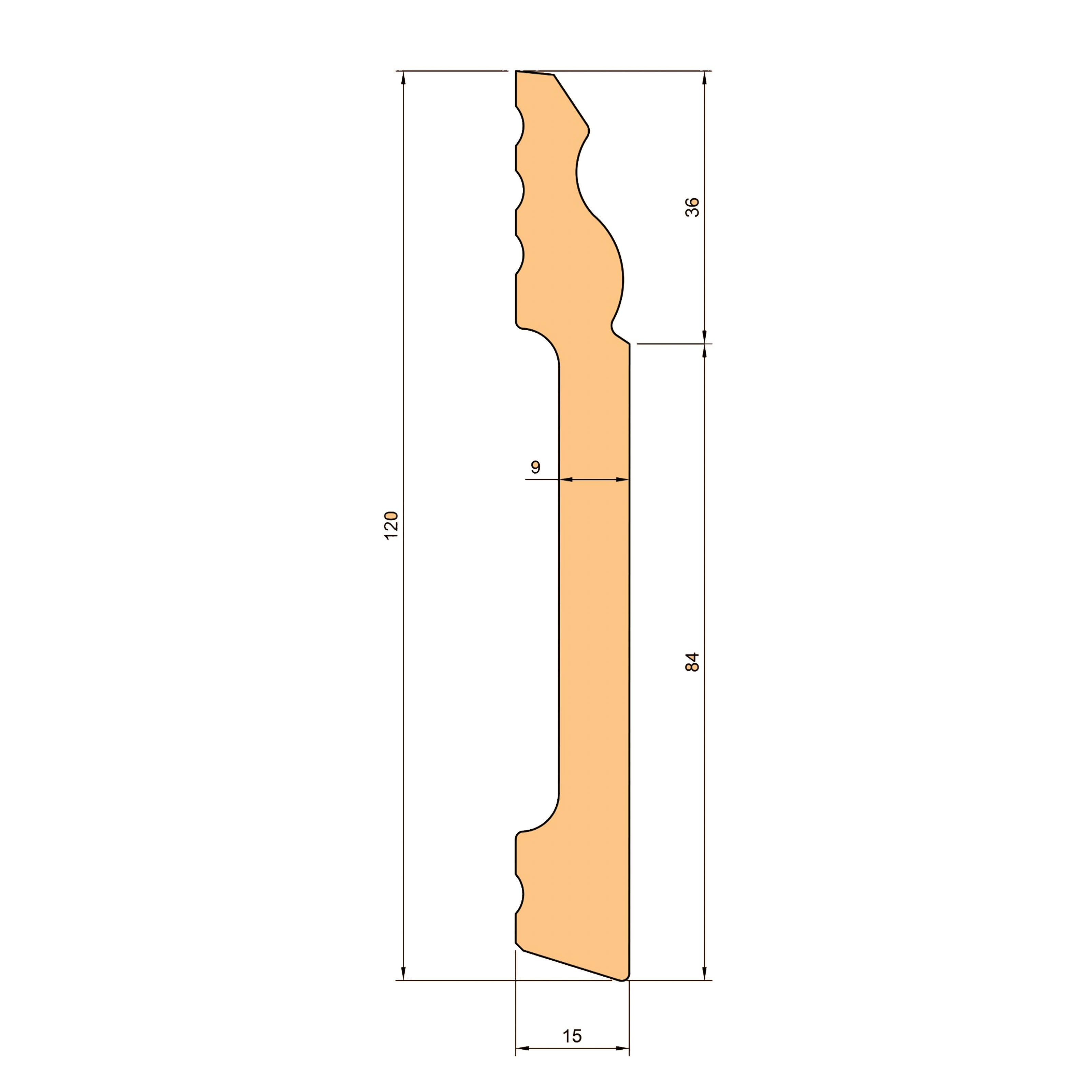 90 metri lineari di Battiscopa DUCALE in POLIMERI EqualWood HI-TEC 120x15x2000mm - BIANCO