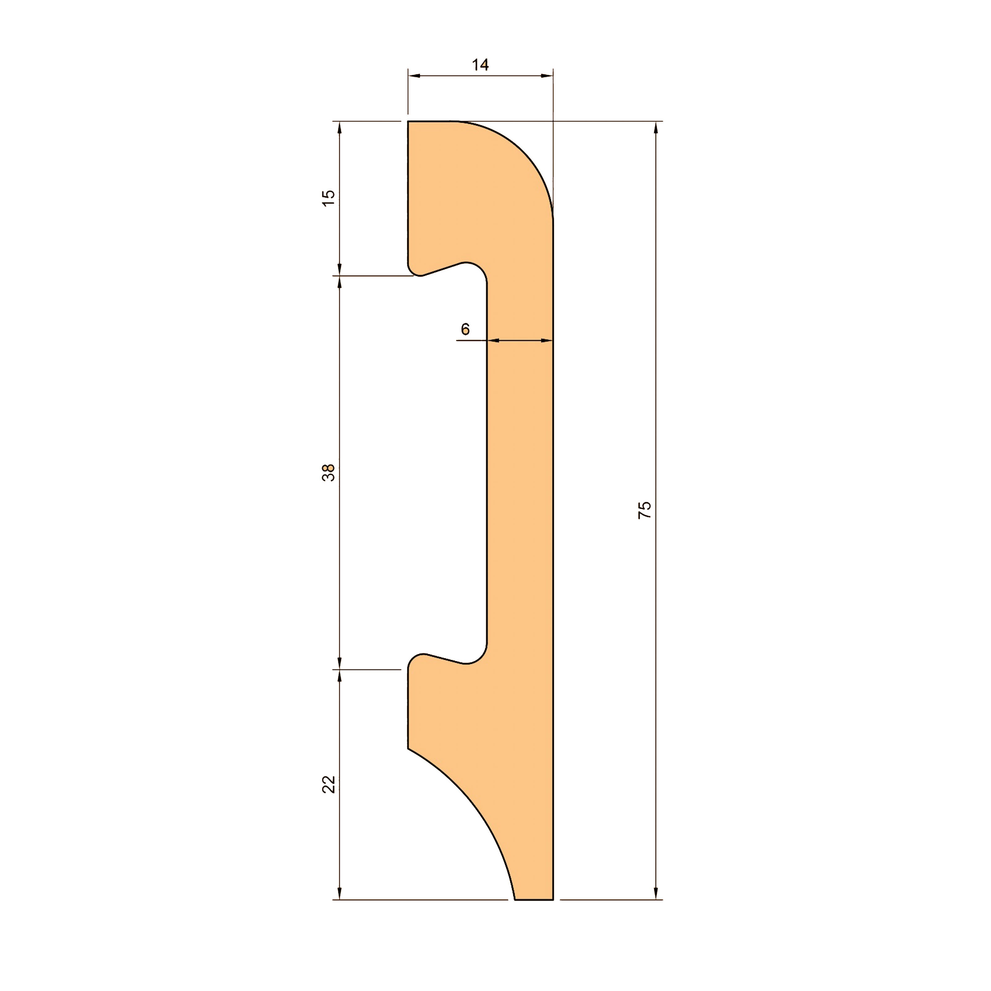 7,5cm di altezza - 1,4cm di spessore - lunghezza barre intere 2 metri (prezzo al metro)
