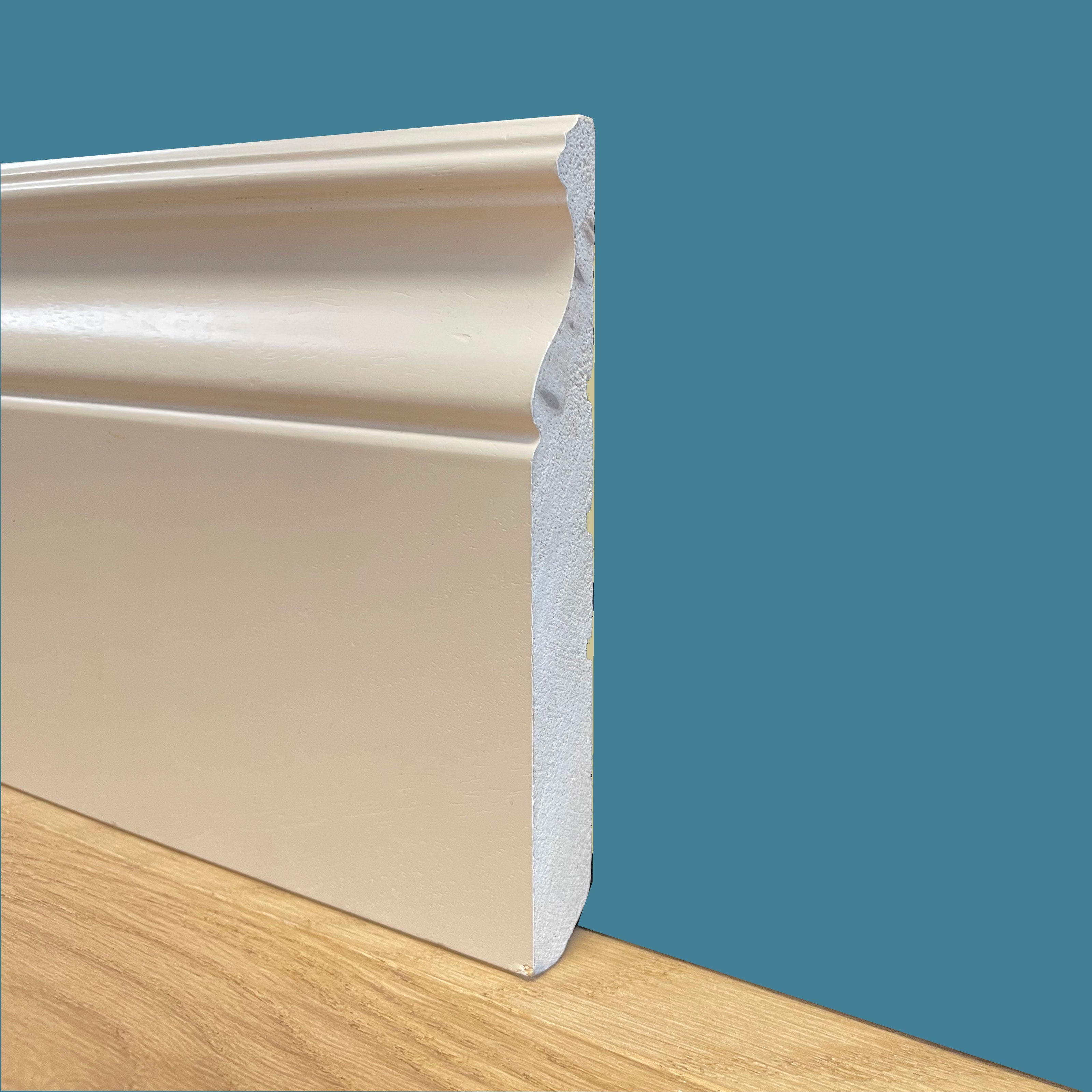 N.B i battiscopa in genere non arrivano “attestati” alle estremità e, oltre a dover essere tagliati, potrebbero presentare anche piccole imperfezioni dovute al trasporto (le teste non vengono imballate di solito) oppure al ciclo di verniciatura (potrebbe essere colata della vernice sulla testa che ne impedisce la normale adesione) , quindi è normale prassi doverle attestare di almeno 1cm in fase di posa. Questo è tipico di tutte le tipologie di battiscopa in commercio.