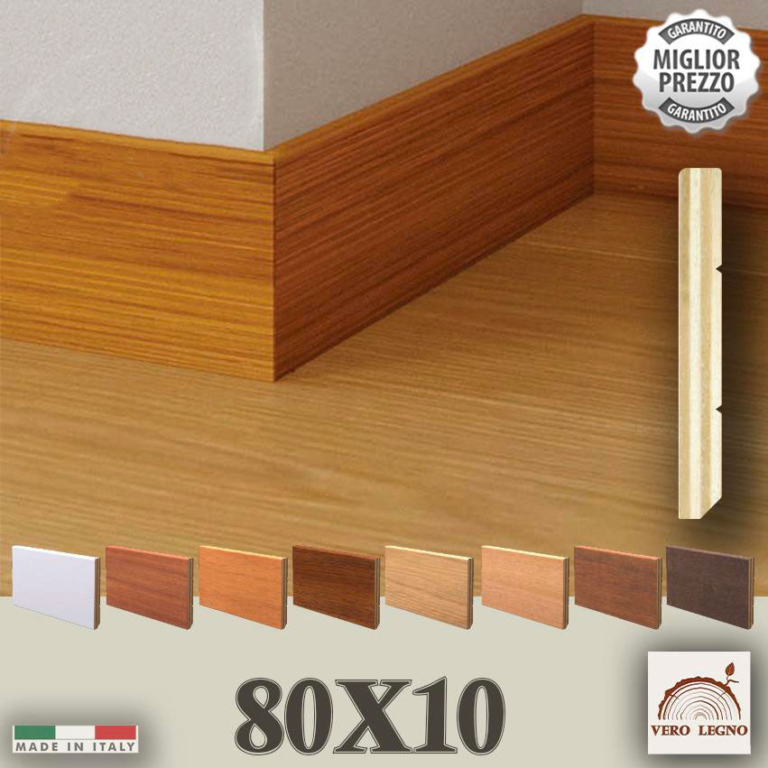 BATTISCOPA ZOCCOLINO in multistrato impiallacciato SQUADRATO MODERNO 80X10 in 8 essenze, Bianco o Grezzo.