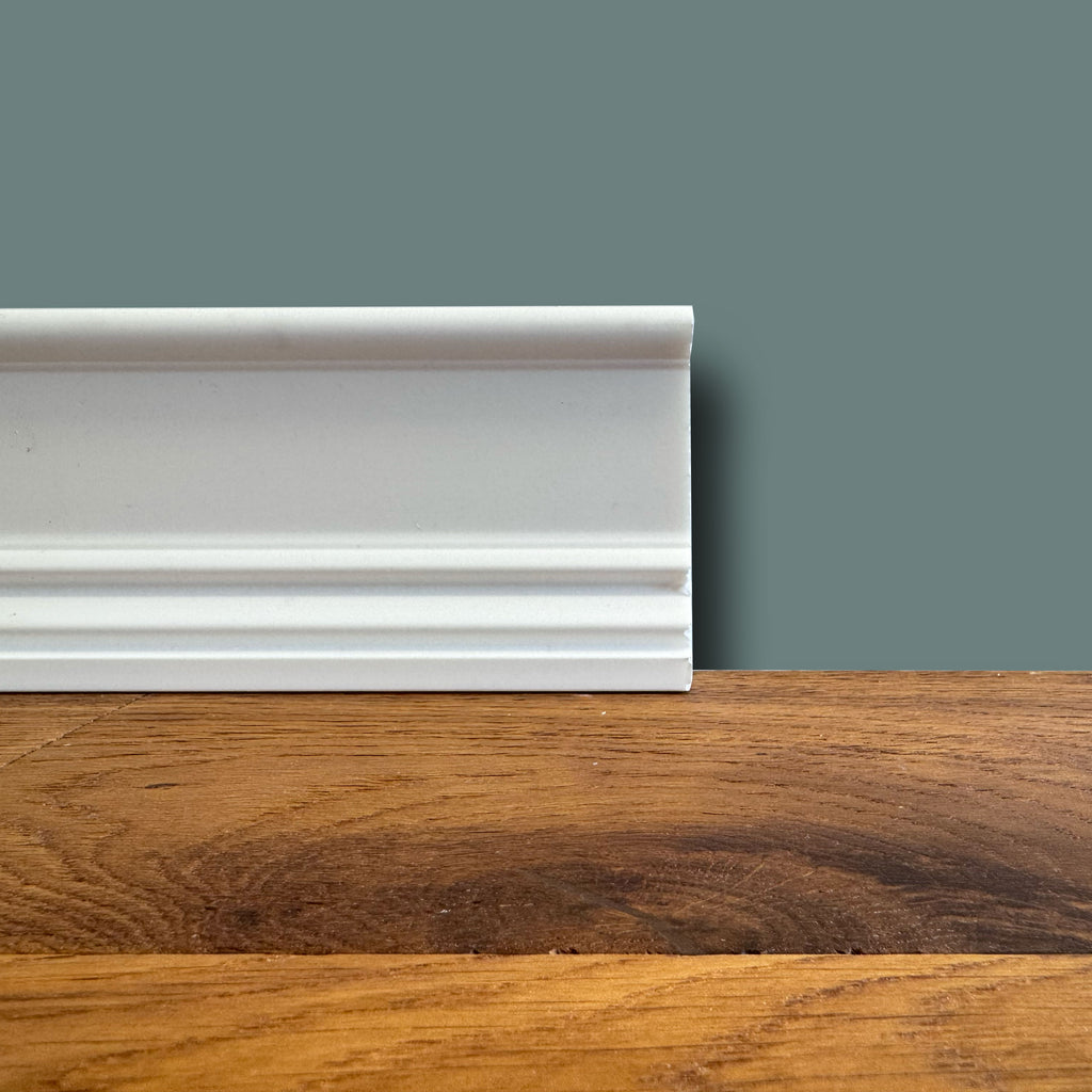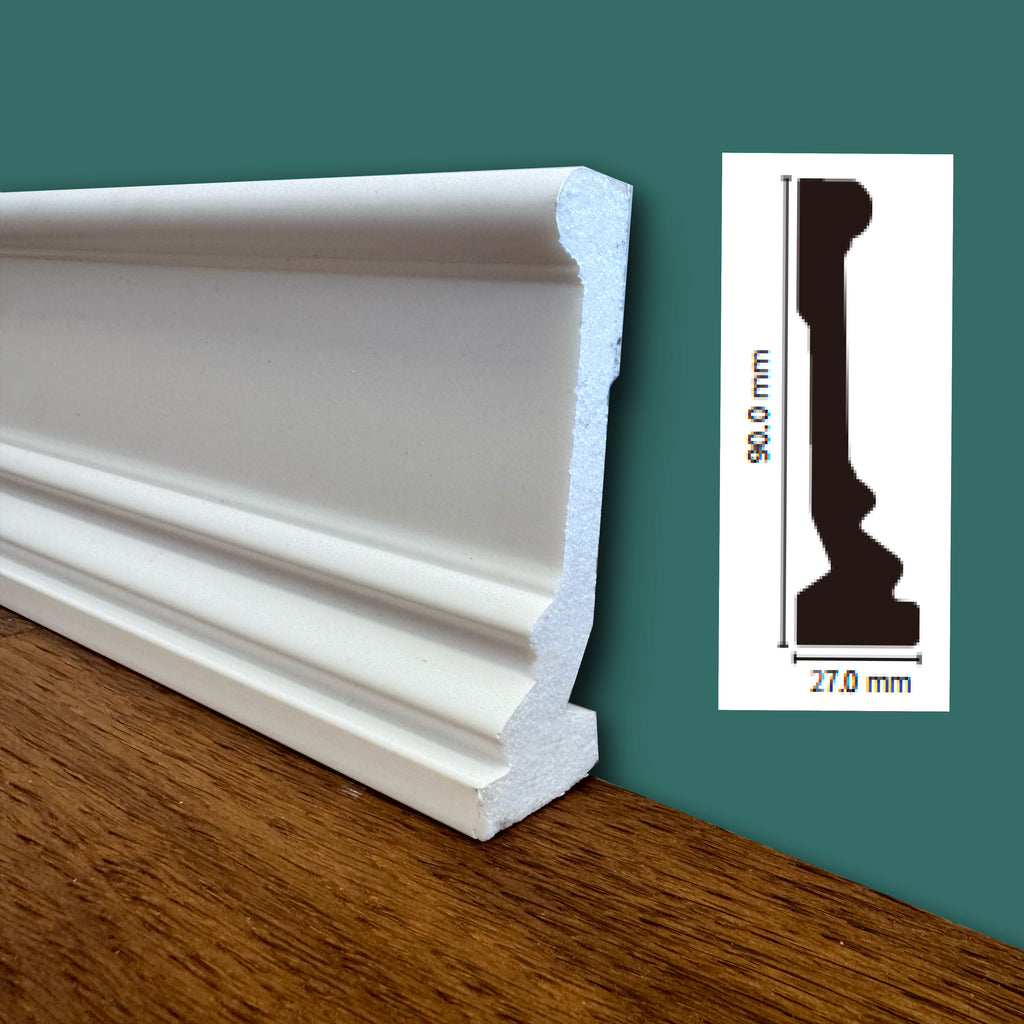 (massimo spessore) Battiscopa in POLIMERI linea BASICBOARD 90x27mm - BIANCO pitturabile (prezzo al metro)