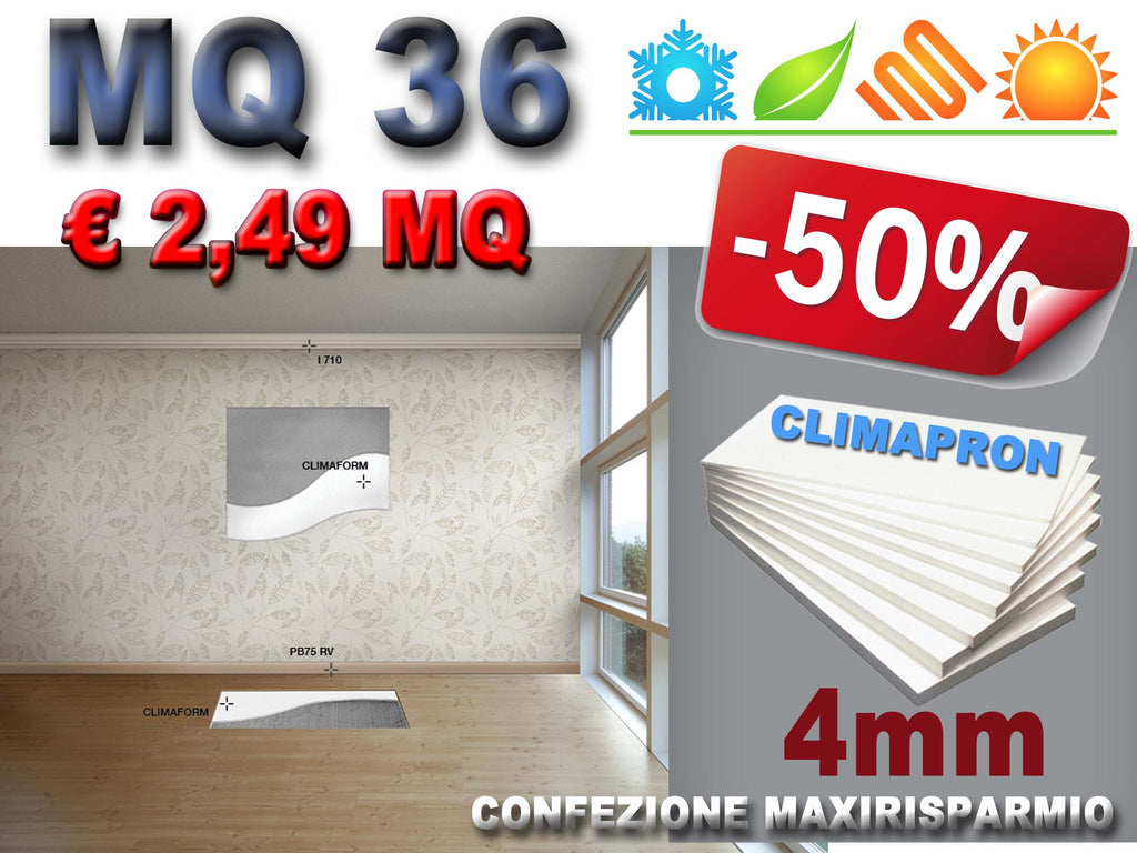 MQ 36 di CLIMAPRON 4mm , pannelli alta densità isolanti ed intonacabili per pareti, sottotetti e sottopavimenti 80X250CM