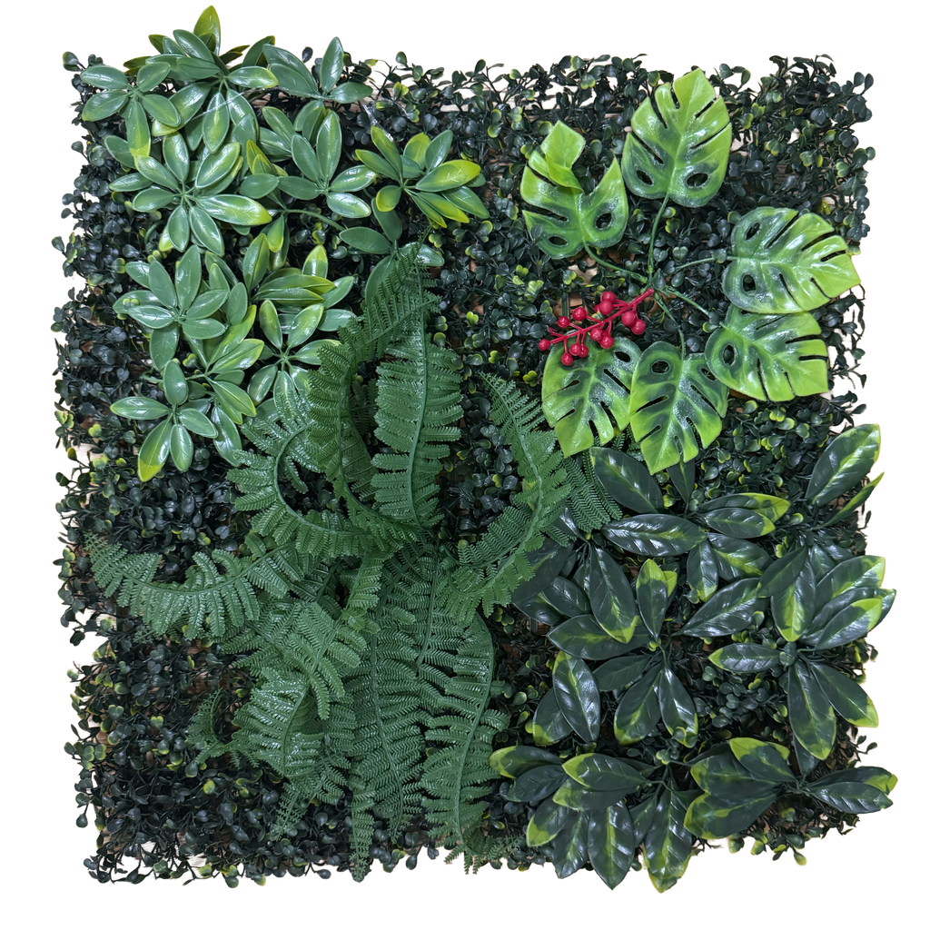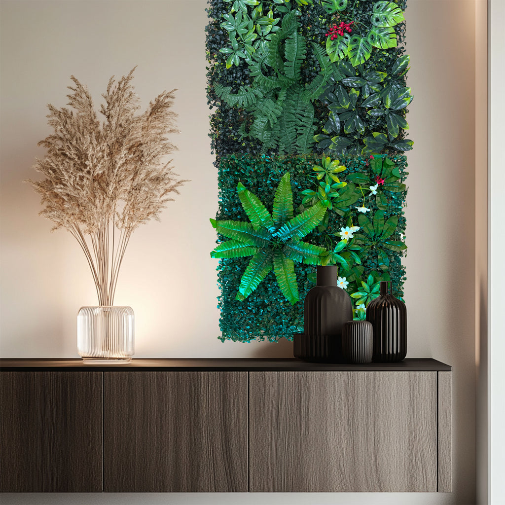 Pannelli Verde Verticale 50×50 cm Ultra-realistici e folti, per interno/esterno BOSCO MISTO - Eternal Parquet con incastri