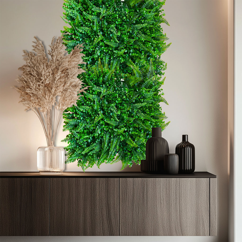 Pannelli Verde Verticale 50×50 cm Ultra-realistici e folti, per interno/esterno FELCI E BOSSO - Eternal Parquet - con incastri