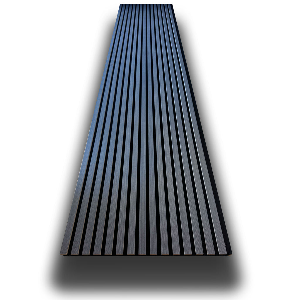 Pannello ACUSTICO (1,74mq) a Lamelli Autoadesivo rivestito in VERO LEGNO + feltro + fibra di legno - mis. 12x600x2900mm ROVERE GRIGIO