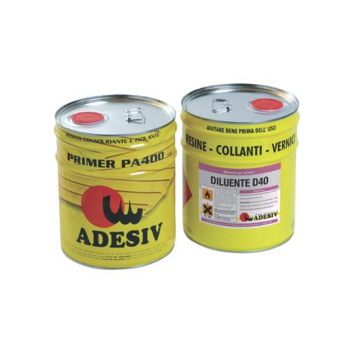 Applicare una mano di primer PA 400 in rapporto di diluizione 1:1 con l’apposito diluente D40. Successivamente a primer asciutto (circa 4 ore) applicare