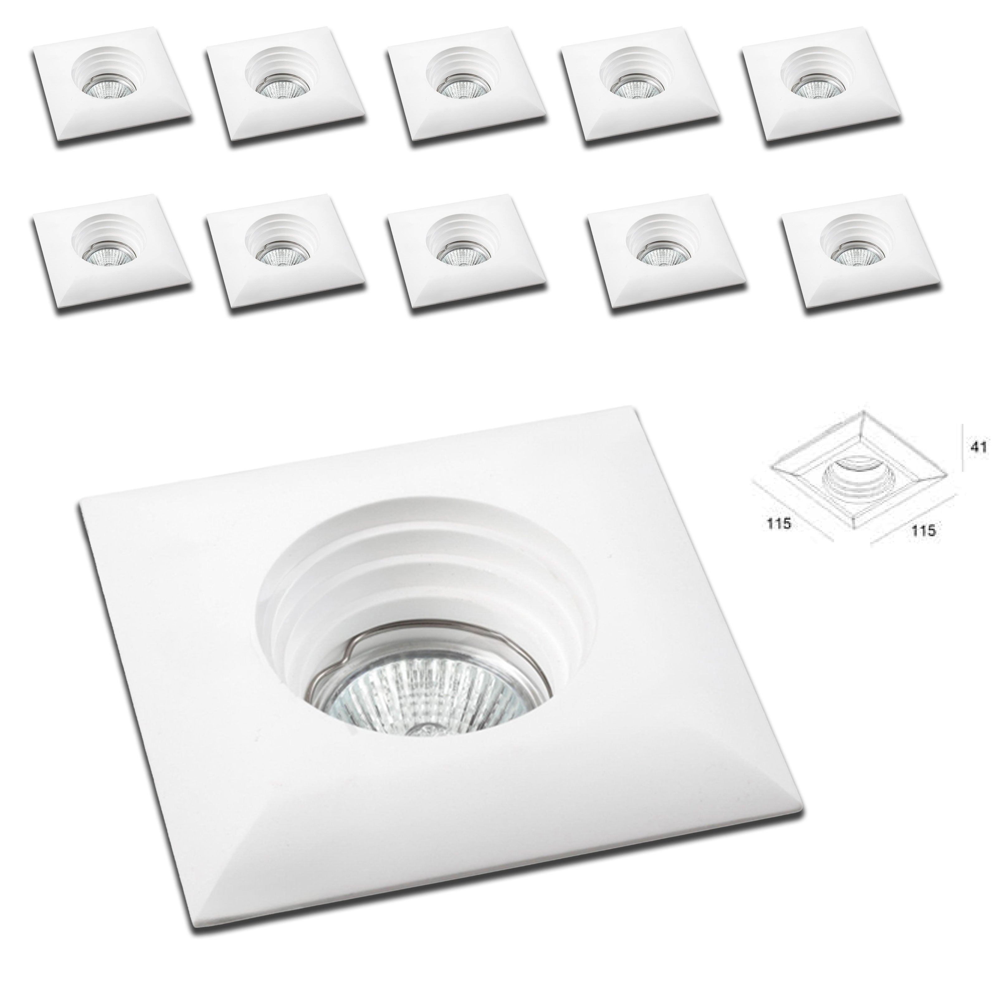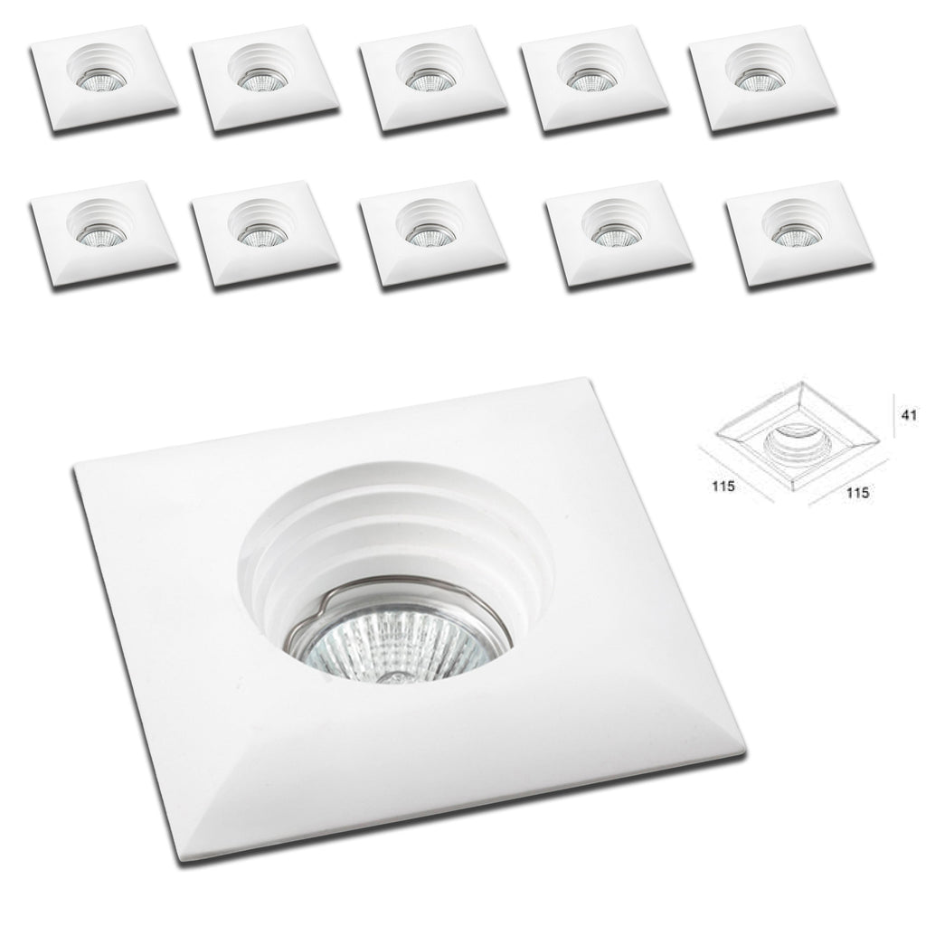 *STOCK* 10 Portafaretti In Gesso Ceramico ad incasso 115x115x41mm foro tondo 35W GU10 IP20