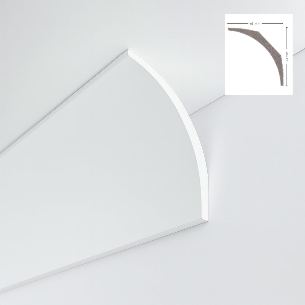 *STOCK FOLLI* Profilo a soffitto in Polimeri Bianco RAL 9016 verniciabile 63X63mm (Prezzo al metro)
