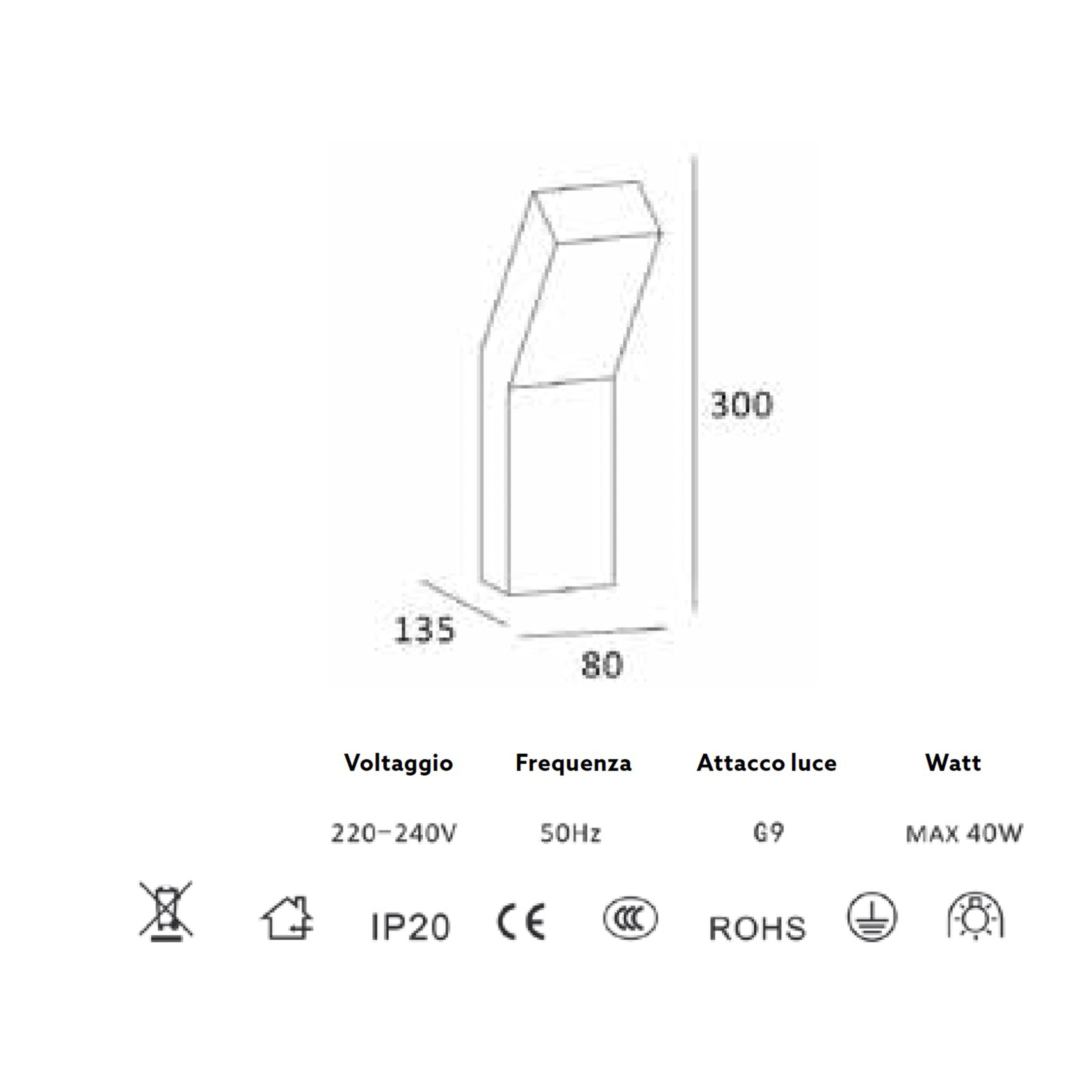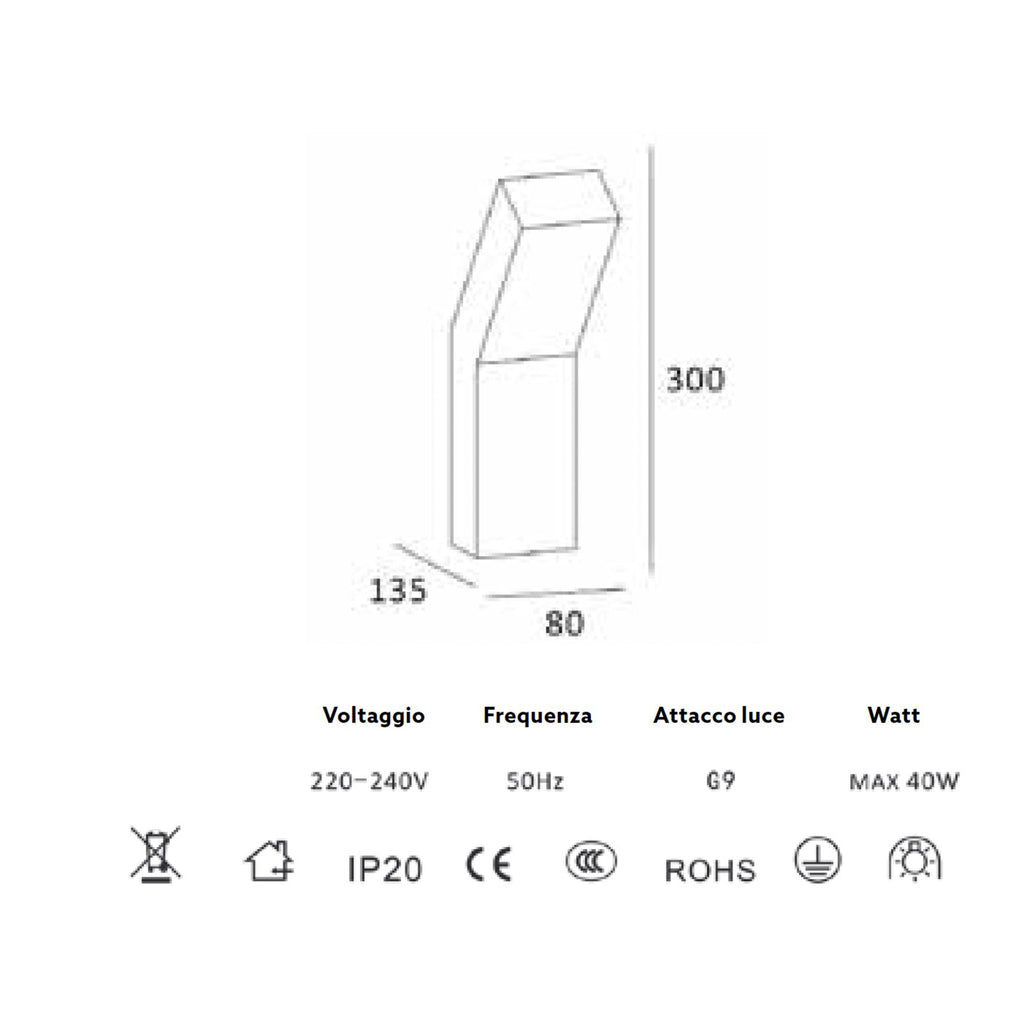 *STOCK* Portafaretto In Gesso Ceramico a muro 135x300mm 40W G9 IP20