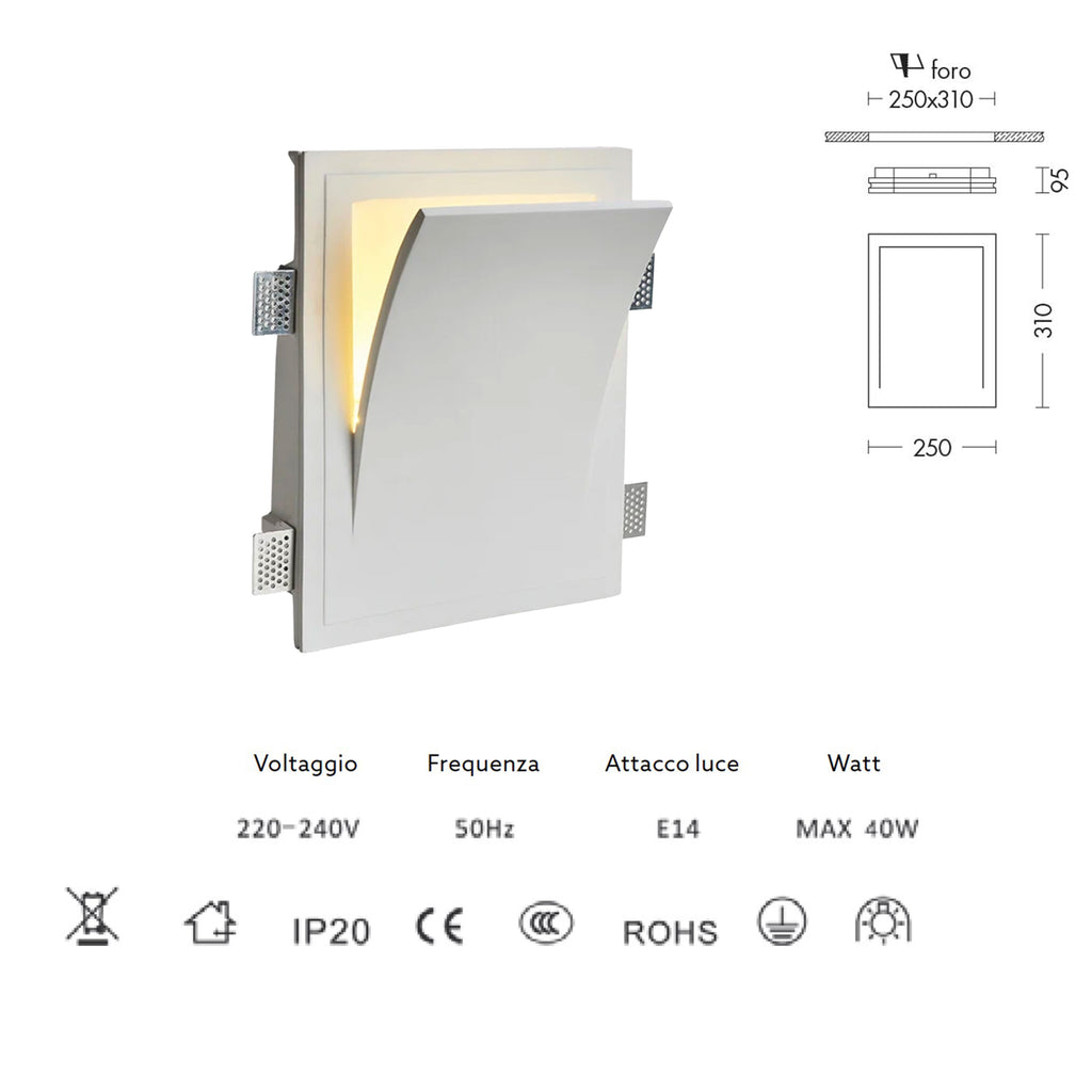 *STOCK* Portafaretto In Gesso Ceramico ad incasso 250x310x95mm 40W GU10 IP20