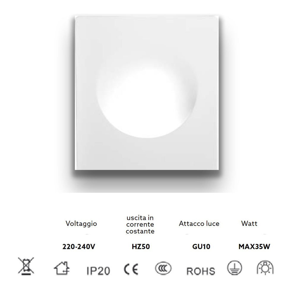 *STOCK* Portafaretto In Gesso Ceramico ad incasso GHOST 250x210x50mm foro 10cm 40W GU10 IP20