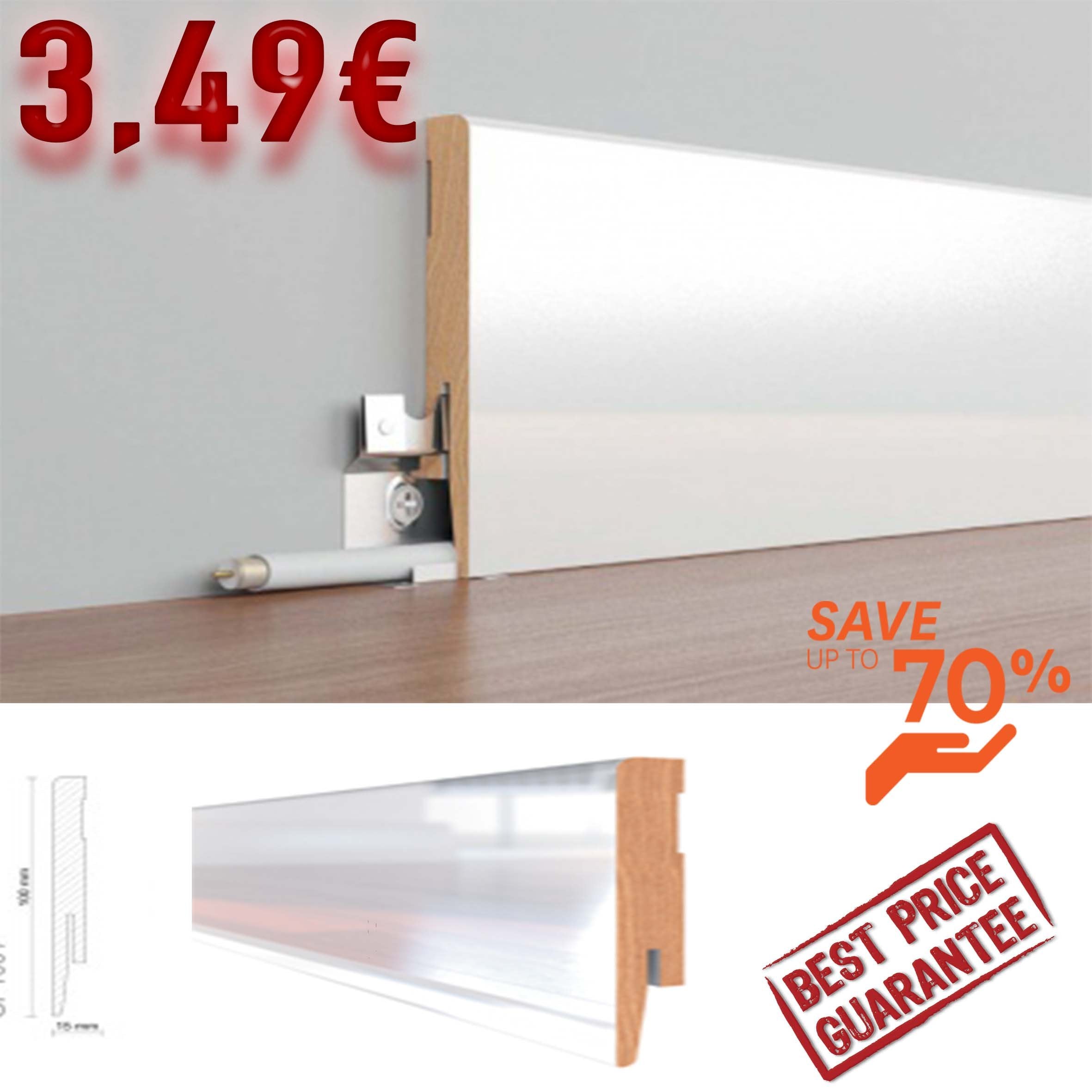 ALUMINIUMBESCHICHTETE SOCKELLEISTE MDF-Sockelleiste 70X10 ALLES INKLUSIVE (Preis pro laufendem Meter)