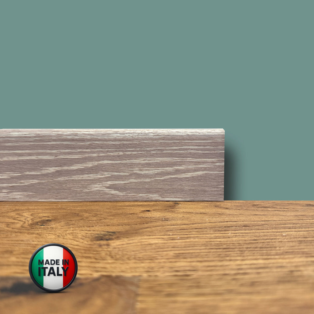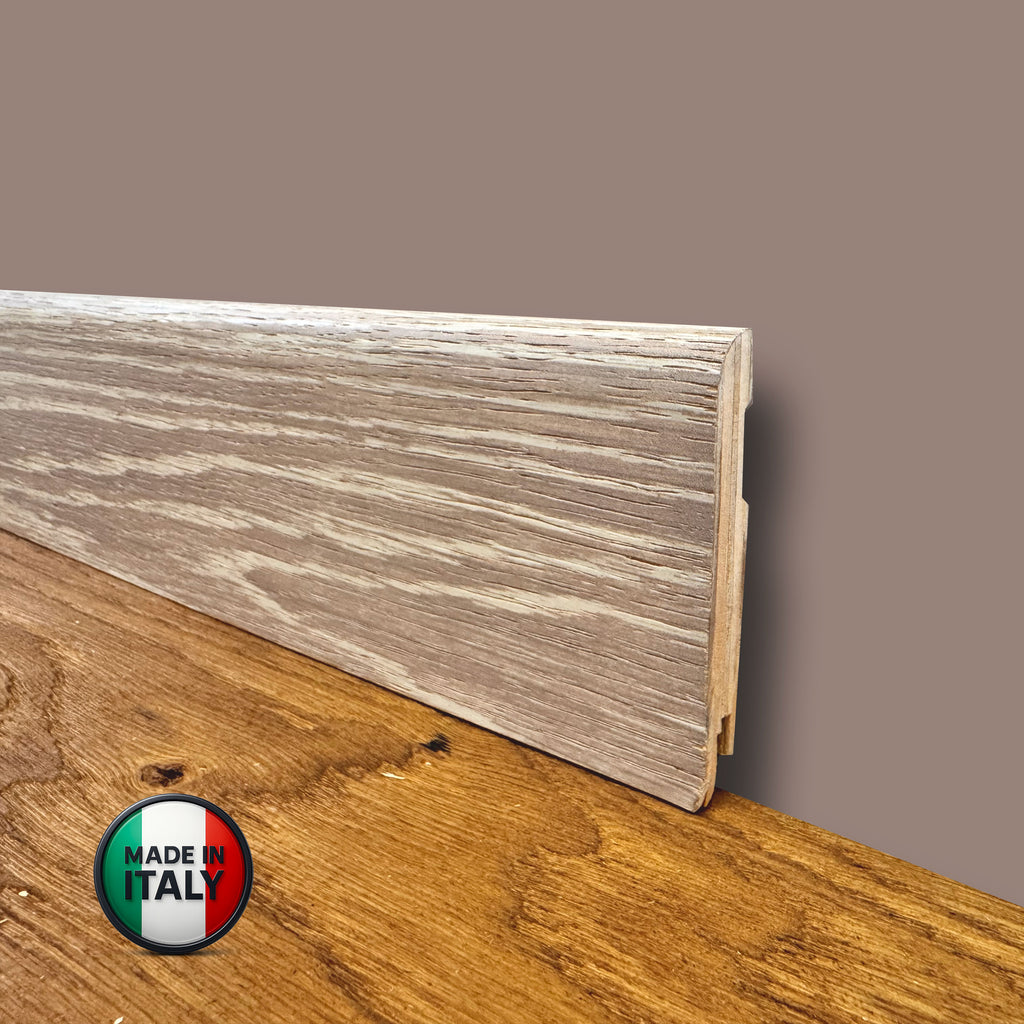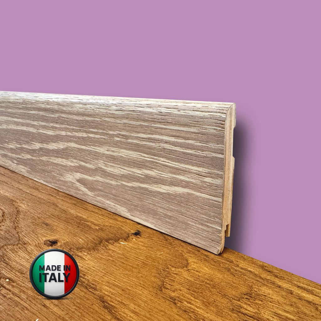 €1,49ml ** FUORI TUTTO ** Lotti da 100ml di Battiscopa in legno multistrato impiall. ROVERE DECAPATO SBIANCATO 70x10mm