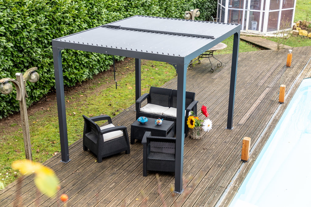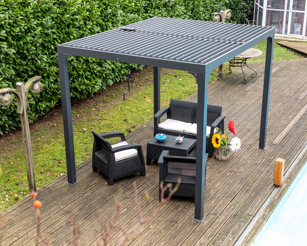 Bioklimatická pergola v hliníkovom ručnom otváraní chráni pred slnkom a dažďom 240x300cm