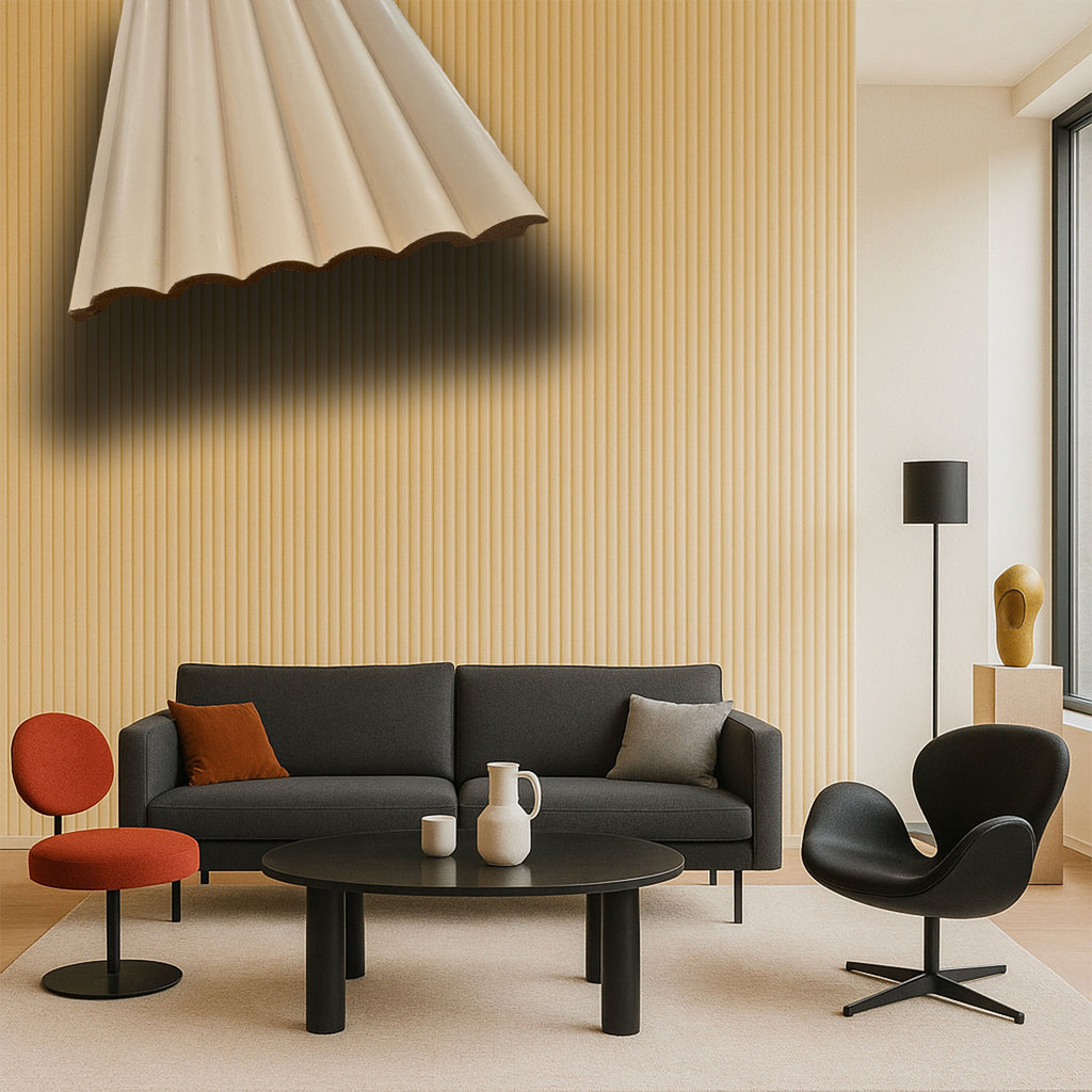 Asta intera 12x154x2800mm di Rivestimento Parete Boiserie cannettato Lamelli tondi eff. Touch VANILLA CLOUD (costo dell'asta 8,99€ iva inclusa) - trasporto fisso di 22€ su qualsiasi quantitativo e in ogni zona d'Italia, tempi di consegna 10gg circa su pallet).